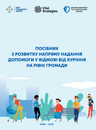 У межах проєкту «Пріоритет охорони здоров’я в питаннях формування та реалізації політики боротьби проти тютюну», який реалізує ДУ «Центр громадського здоров’я МОЗ України», за підтримки гранту Vital Strategies, що адмініструється Vital Strategies та фінансується Bloomberg Philanthropies, підготовлено посібник з розвитку напряму надання допомоги у відмові від куріння на рівні громади. Цей посібник містить прості й дієві інструменти для впровадження комплексного підходу до організації та розвитку допомоги у відмові від куріння на рівні громади. Він призначений для фахівців сфери громадського здоров’я, але також може бути корисним для лідерів громад, соціальних працівників, представників освітнього сектора та всіх, хто залучений до створення здорового середовища в громаді. Практичні рекомендації, викладені в посібнику, сприятимуть зниженню поширеності куріння та стануть цінним ресурсом для тих, хто прагне зробити свою громаду здоровішою й вільною від тютюну та нікотину.